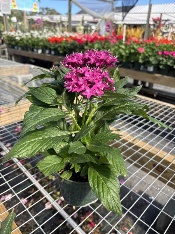 Penta Lucky Star (Pentas lanceolata 'Lucky Star') is a compact, bushy plant that produces large clusters of vibrant, star-shaped flowers. It is known for attracting butterflies and hummingbirds, adding color to landscapes and containers throughout the year. This low-maintenance plant is perfect for sunny gardens and thrives in Florida's warm climate.