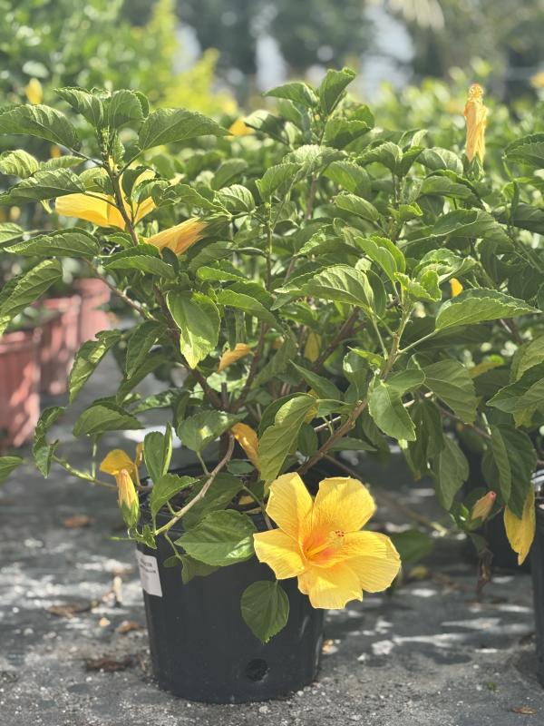 Hibiscus rosa-sinensis 'Sunset' is a striking tropical hibiscus known for its warm-toned flowers that blend shades of orange, red, and yellow—reminiscent of a vivid Florida sunset. This vibrant variety adds bold, tropical color to gardens, borders, or containers and performs best in sunny, well-drained locations.