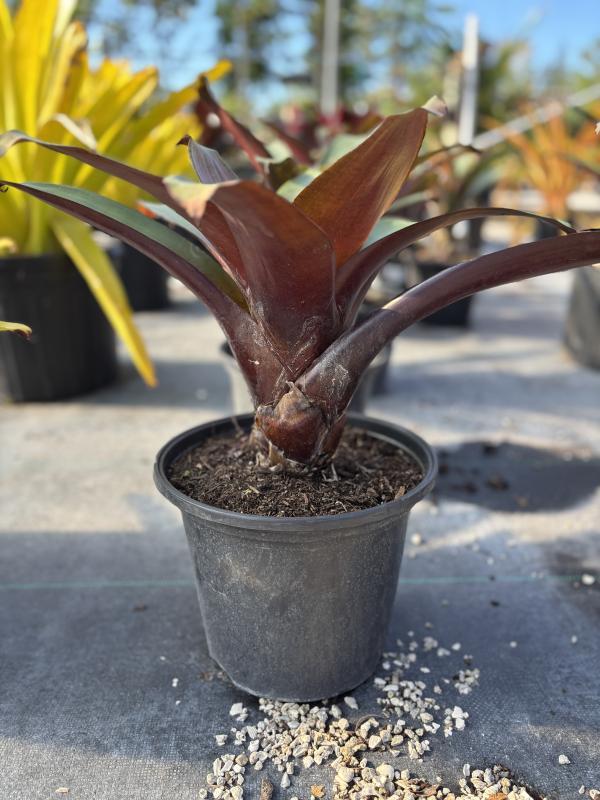 Aechmea 'Alcantarea' (Alcantarea spp.) is a dramatic, architectural bromeliad known for its towering rosettes of stiff, leathery leaves—often silver, green, or burgundy—and its impressive, long-lasting flower spikes. These bold plants bring a sculptural, tropical focal point to shaded beds, containers, or epiphytic displays in warm climates like Florida’s.