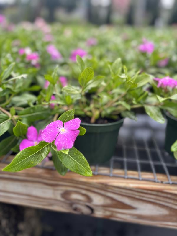 Vinca 'Cascade' (Catharanthus roseus) is a trailing, spreading annual plant known for its abundant, colorful blooms and vigorous growth habit, making it ideal for hanging baskets, containers, and ground cover. This variety thrives in Florida's hot climate, offering continuous blooms from spring through fall, and is valued for its heat tolerance, drought resistance, and ability to grow in full sun with minimal care.