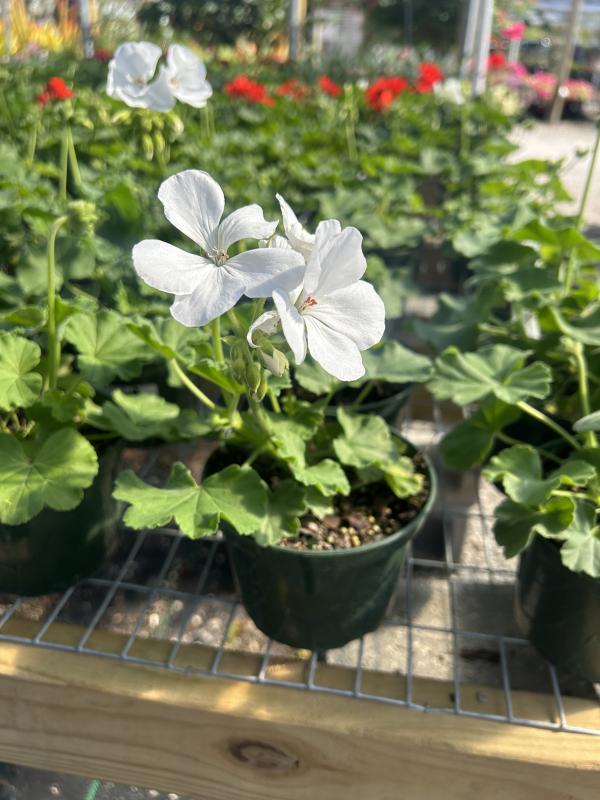 Geranium 'Calliope' (Pelargonium spp.) is a hybrid variety of geranium known for its large, vibrant blooms in colors like red, pink, and white. It is a compact and bushy plant that thrives in Florida's sunny, warm climate, providing continuous color from spring through fall. Calliope is prized for its heat tolerance, vibrant flowers, and strong growth habit, making it an excellent choice for containers, hanging baskets, and garden beds.