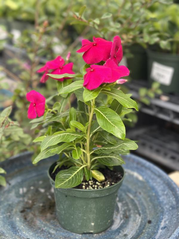 Vinca 'XDR Pacifica' (Catharanthus roseus 'XDR Pacifica') is a disease-resistant variety of vinca known for its compact growth and continuous blooming throughout the warmer months. It offers a wide range of vibrant flower colors and thrives in Florida’s heat and humidity.