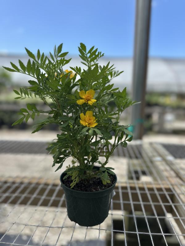 Marigold (Tagetes spp.) is a popular annual known for its bright, cheerful flowers and ease of care. It produces vibrant blooms in shades of yellow, orange, and red, attracting pollinators like bees and butterflies. Marigolds are commonly used in garden beds, containers, and hanging baskets, known for their ability to bloom continuously throughout the growing season while tolerating a variety of soil types.