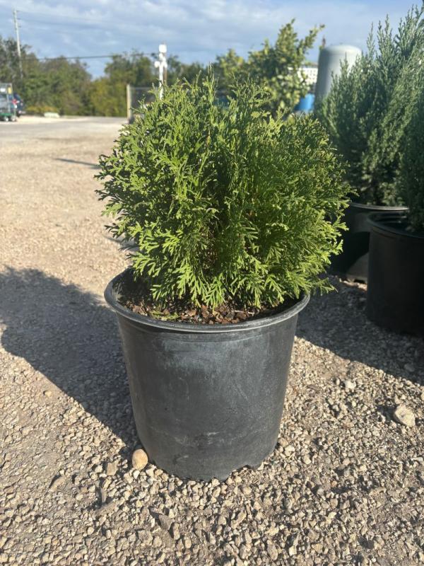 Arborvitae Dwarf Green (Thuja occidentalis ‘Dwarf Green’) is a compact, slow-growing evergreen shrub with dense, rich green foliage. Its naturally rounded shape and low maintenance needs make it ideal for borders, foundation plantings, or container gardening. This hardy conifer thrives in well-drained soil and maintains its vibrant color throughout the year, providing year-round interest in the landscape.