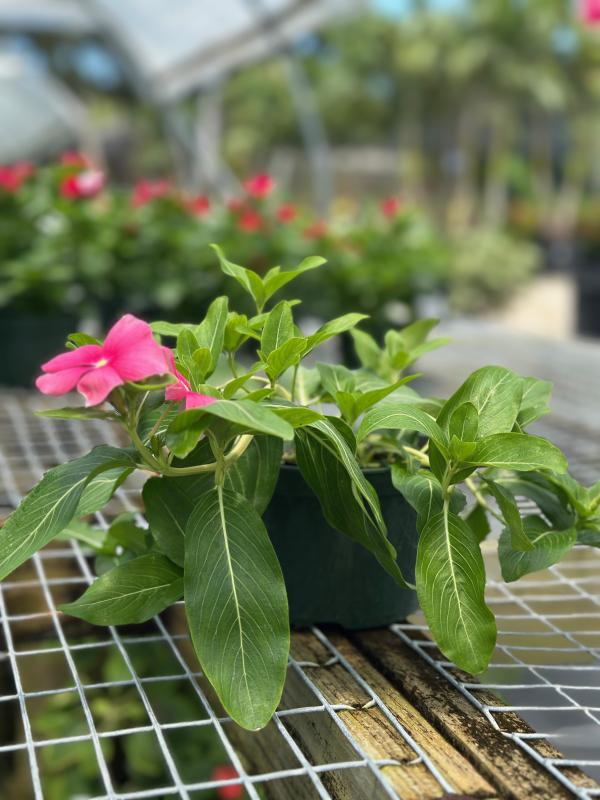 Vinca 'Cascade' (Catharanthus roseus) is a trailing, spreading annual plant known for its abundant, colorful blooms and vigorous growth habit, making it ideal for hanging baskets, containers, and ground cover. This variety thrives in Florida's hot climate, offering continuous blooms from spring through fall, and is valued for its heat tolerance, drought resistance, and ability to grow in full sun with minimal care.