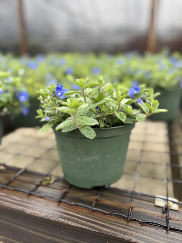 Blue Daze 'Dwarf' (Evolvulus glomeratus 'Dwarf') is a compact, low-growing cultivar that offers the same charming sky-blue flowers as the standard variety but with a tighter, more controlled growth habit. Its silver-green foliage and prolific blooms make it a great choice for small spaces, edging, or container gardens.