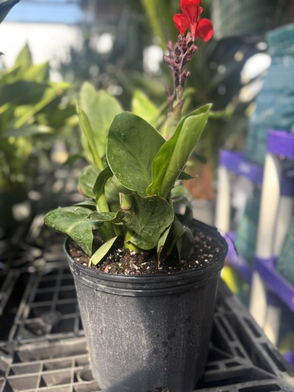 Tropical Canna Lily (Canna spp.) is a vibrant, heat-loving perennial known for its lush, tropical foliage and bold, colorful blooms. This striking plant thrives in warm climates and adds a dramatic flair to gardens, borders, and container plantings. It prefers moist, well-drained soil and flourishes in sunny locations.