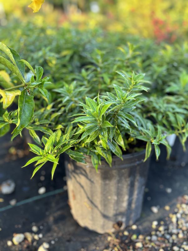 Allamanda Bush (Allamanda cathartica) is a tropical shrub known for its large, showy, trumpet-shaped yellow flowers and glossy green foliage. It is often used in gardens or as a hedge, thriving in full sun and adding a bold, colorful display through the warmer months.