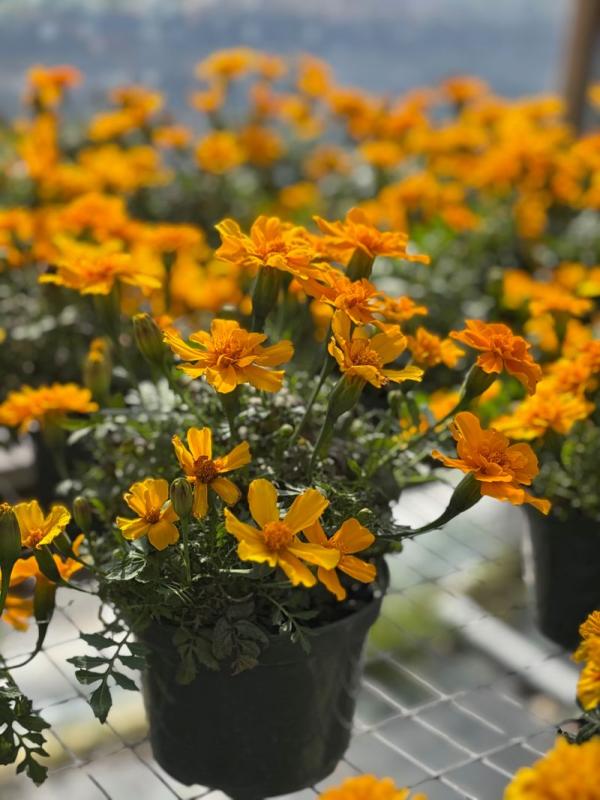 Marigold (Tagetes spp.) is a popular annual known for its bright, cheerful flowers and ease of care. It produces vibrant blooms in shades of yellow, orange, and red, attracting pollinators like bees and butterflies. Marigolds are commonly used in garden beds, containers, and hanging baskets, known for their ability to bloom continuously throughout the growing season while tolerating a variety of soil types.