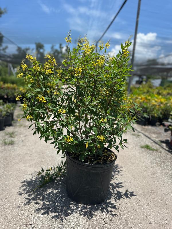Thryallis (Galphimia gracilis) is a small, evergreen shrub known for its profuse yellow flowers and slender, arching branches. It is a popular ornamental plant in Florida, often used as a hedge, border, or accent plant due to its vibrant blooms and compact form. Thryallis thrives in full sun and is highly tolerant of heat, making it well-suited for Florida’s tropical and subtropical climates.