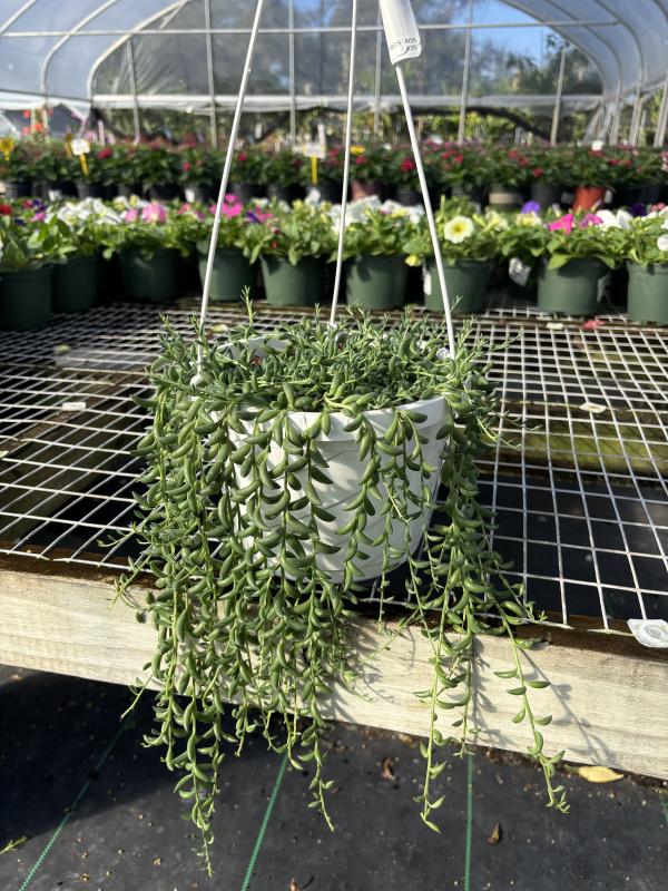 String of Banana (Senecio radicans) is a unique, trailing succulent known for its long, banana-shaped leaves that create a cascading effect. This plant is ideal for hanging baskets or containers and thrives in Florida’s sunny conditions, adding a playful and tropical touch to indoor or outdoor spaces.