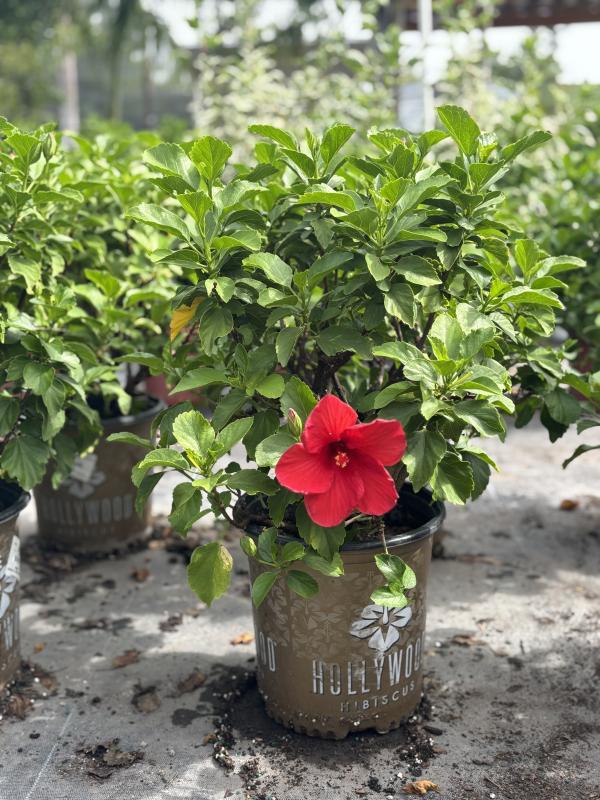 Hibiscus 'First to Arrive' (Hibiscus rosa-sinensis 'First to Arrive') is a vigorous tropical hibiscus variety known for its abundant, large bright red flowers that bloom early in the season. This variety adds vibrant color to landscapes and is prized for its long flowering period and lush green foliage.