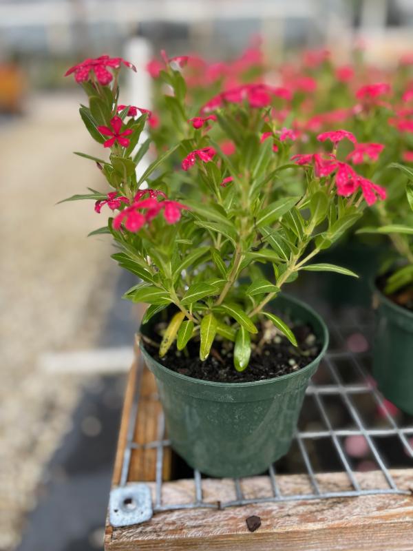 Suntory Vinca 'Pink' (Catharanthus roseus) is a vibrant annual flowering plant known for its bright pink blooms that add a pop of color to gardens and containers. It thrives in Florida’s hot climate, providing continuous color from spring through fall. This variety is prized for its heat tolerance, drought resistance, and its ability to flourish with minimal care, making it an excellent choice for Florida landscapes.
