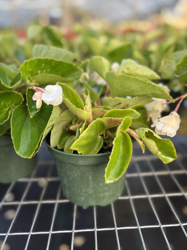 Begonia Dragon Wing (Begonia x hybrida) is a vigorous, heat-tolerant plant with arching stems and lush, glossy green foliage. It produces clusters of delicate, pendulous flowers in shades of red or pink, blooming continuously in warm climates. This low-maintenance plant is ideal for containers, hanging baskets, and landscape borders.