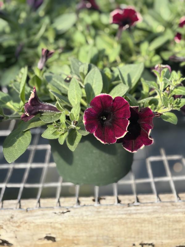Petunia Crazytunia (Petunia spp.) is a variety of petunia known for its vibrant and unique blooms. The flowers are characterized by bold, striking colors and patterns that stand out in any garden or container. This variety is well-suited for full sun, where it will thrive, producing an abundance of colorful flowers throughout the warm months. It is a great choice for adding visual interest and texture to flower beds, hanging baskets, or window boxes.