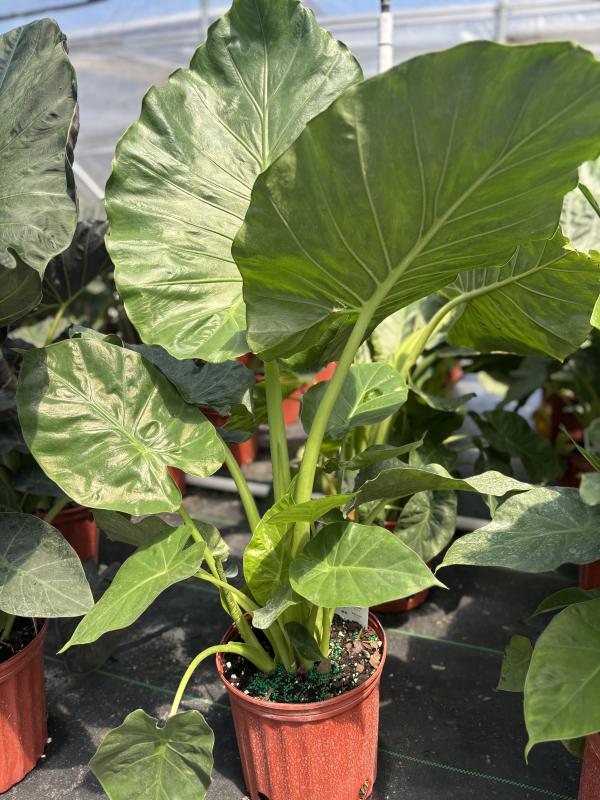 Alocasia (Alocasia spp.), commonly known as elephant ear or African mask plant, is a striking tropical plant celebrated for its dramatic foliage. Its large, heart- or arrow-shaped leaves, often with prominent veins, come in a variety of colors, including deep green, silver, and purple hues. This versatile plant adds an exotic feel to landscapes or as a statement piece in containers, thriving in warm and humid environments.