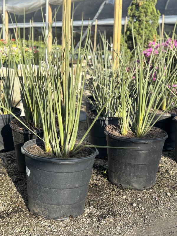 Leafless Bird of Paradise (Strelitzia juncea) is a unique, architectural plant known for its narrow, cylindrical leaf stalks and striking orange and blue flowers that resemble the classic bird of paradise bloom. Unlike other Strelitzia species, it lacks broad leaves, giving it a sculptural, minimalist appearance ideal for modern landscapes.