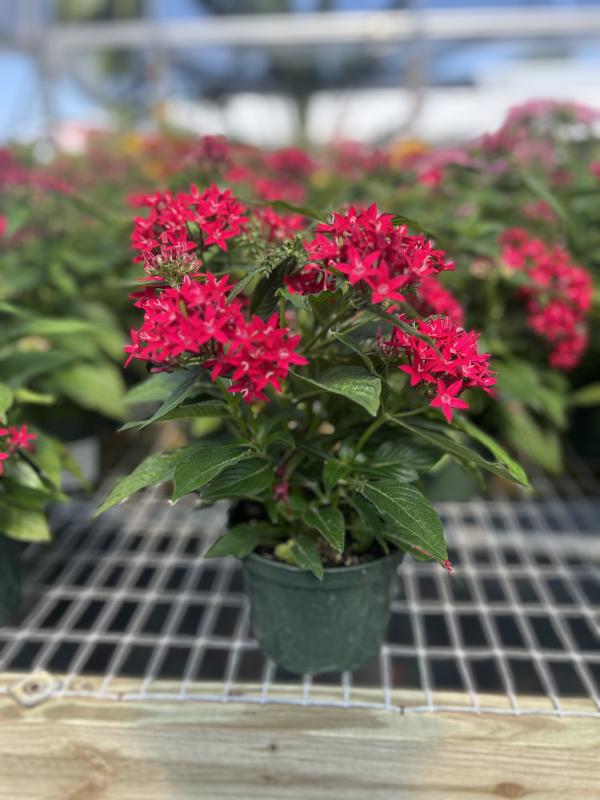 Penta Lucky Star (Pentas lanceolata 'Lucky Star') is a compact, bushy plant that produces large clusters of vibrant, star-shaped flowers. It is known for attracting butterflies and hummingbirds, adding color to landscapes and containers throughout the year. This low-maintenance plant is perfect for sunny gardens and thrives in Florida's warm climate.