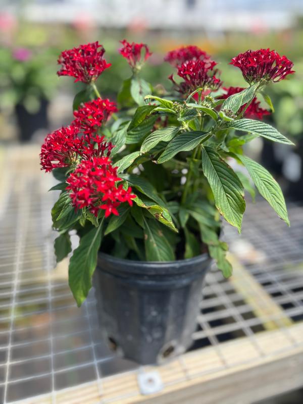 Penta Lucky Star (Pentas lanceolata 'Lucky Star') is a compact, bushy plant that produces large clusters of vibrant, star-shaped flowers. It is known for attracting butterflies and hummingbirds, adding color to landscapes and containers throughout the year. This low-maintenance plant is perfect for sunny gardens and thrives in Florida's warm climate.