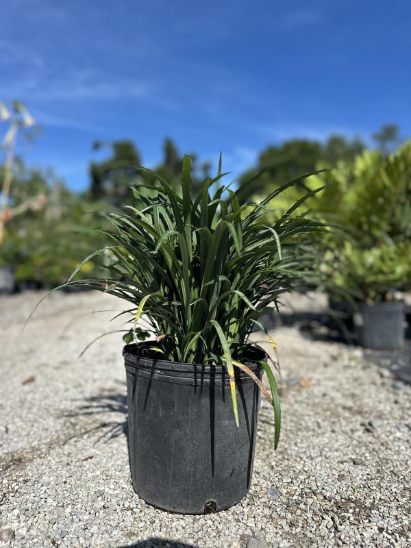 Liriope 'Emerald Goddess' (Liriope muscari 'Emerald Goddess') is a lush, grass-like groundcover known for its dense, emerald green foliage and upright growth habit. In late summer, it produces spikes of lavender to purple flowers that rise above the foliage, followed by small black berries. It's a hardy, low-maintenance plant perfect for borders, mass plantings, or under trees.