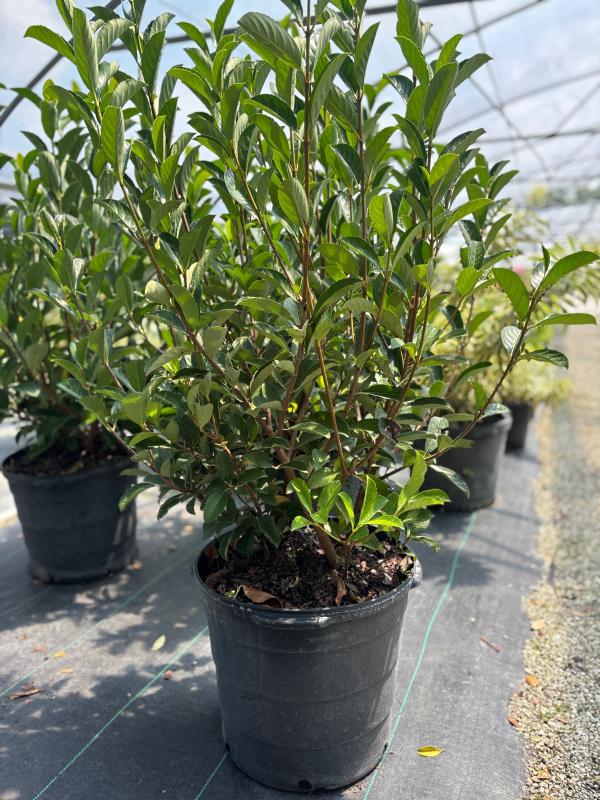 Viburnum 'Awabuki' (Viburnum odoratissimum var. awabuki) is a fast-growing evergreen shrub with large, glossy green leaves and fragrant white flower clusters in spring. It’s an excellent choice for hedges, privacy screens, or foundation plantings, and it can also be pruned into a small tree.