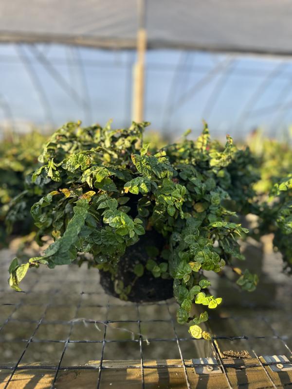 Creeping Fig (Ficus pumila) is a versatile, evergreen vine known for its ability to quickly cover walls, fences, and trellises with dense, glossy green foliage. It has small, heart-shaped leaves that provide a lush, carpet-like appearance as it spreads. This fast-growing plant is perfect for ground cover, privacy screens, or adding texture to vertical surfaces in partially sunny areas.