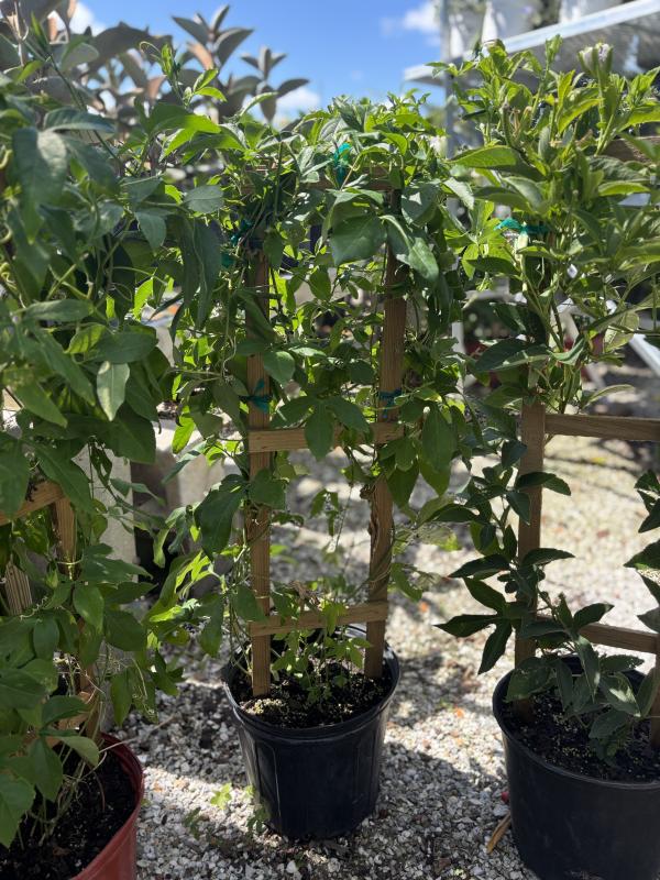 Maypop Passion Vine (Passiflora incarnata) is a vigorous, perennial vine known for its large, striking purple flowers and edible fruit. The fruit, which is green when unripe and turns yellow when fully ripe, has a sweet-tart flavor and is commonly eaten fresh, used in juices, or made into jams. Maypop Passion Vine thrives in Florida’s warm, subtropical climate and is a popular choice for both ornamental and edible gardens.