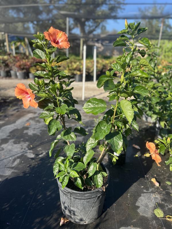 Hibiscus rosa-sinensis 'Tangerine Tango' is a tropical hibiscus variety celebrated for its vibrant, tangerine-orange blooms that bring a fiery splash of color to landscapes and container gardens. The large, showy flowers stand out against glossy green foliage, making it a popular choice for creating a lively, tropical feel.