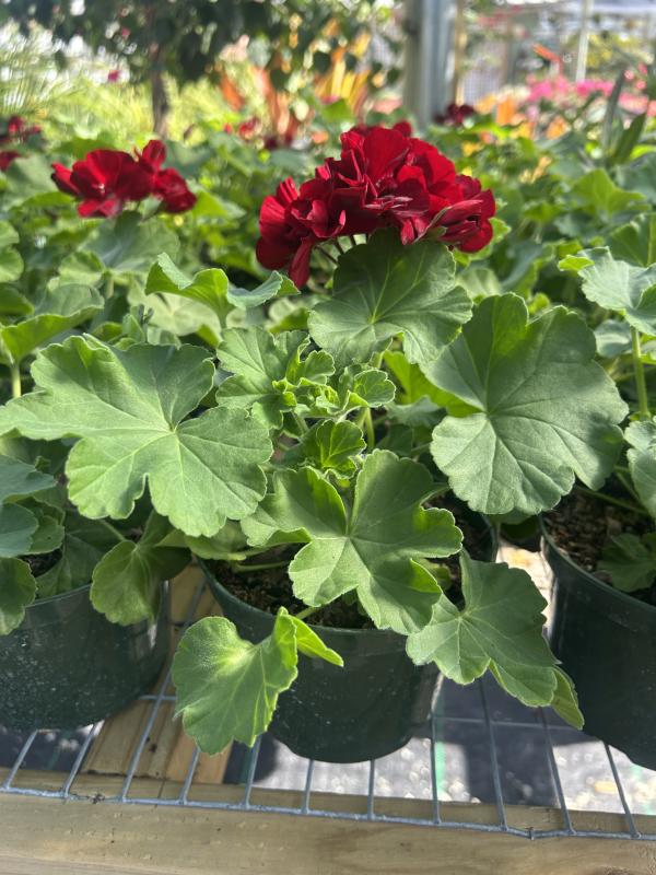 Geranium 'Calliope' (Pelargonium spp.) is a hybrid variety of geranium known for its large, vibrant blooms in colors like red, pink, and white. It is a compact and bushy plant that thrives in Florida's sunny, warm climate, providing continuous color from spring through fall. Calliope is prized for its heat tolerance, vibrant flowers, and strong growth habit, making it an excellent choice for containers, hanging baskets, and garden beds.