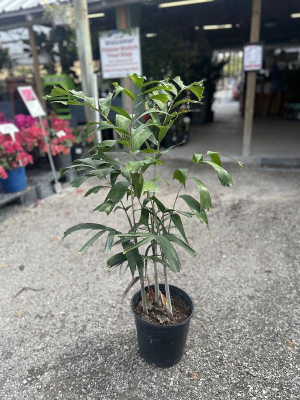 Foxtail Palm (Wodyetia bifurcata) is a graceful, fast-growing palm known for its full, bushy fronds that resemble a fox’s tail. It features a smooth, slender trunk and is popular for tropical landscaping in warm climates.