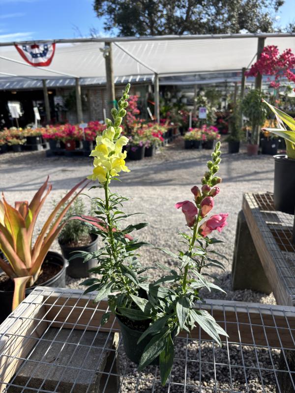 Snapdragon ‘Sonnet Mix’ (Antirrhinum majus ‘Sonnet Mix’) is a compact, cool-season flowering plant known for its sturdy flower spikes and wide range of vibrant colors. The blooms appear in dense clusters and perform well in garden beds, borders, and containers, adding vertical interest and bright seasonal color. Snapdragon ‘Sonnet Mix’ thrives in Florida during the cooler months, providing reliable flowering and attracting pollinators such as bees.